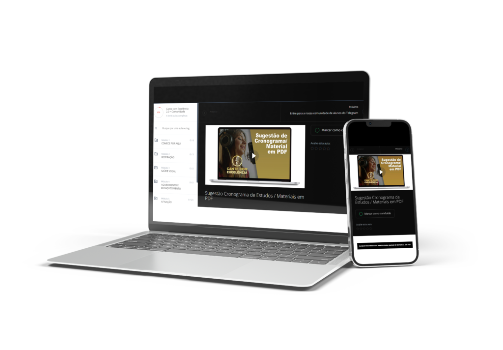 Você poderá deixar suas dúvidas referente ao curso, na aba de comentários abaixo de cada vídeo, dentro da plataforma de aulas e também dentro da comunidade de alunos/telegram, por onde poderá enviar vídeos e áudios praticando os execícios do curso, pelo período de 6 meses após a compra (esse período não pode ser pausado ou adiado), haverá um vídeo com orientações e o link da nossa comunidade no telegram, verifique sua caixa de spam, em caso de não receber o link, nos envie um e-mail para suporte@cantecomexcelencia.com com o código da compra!